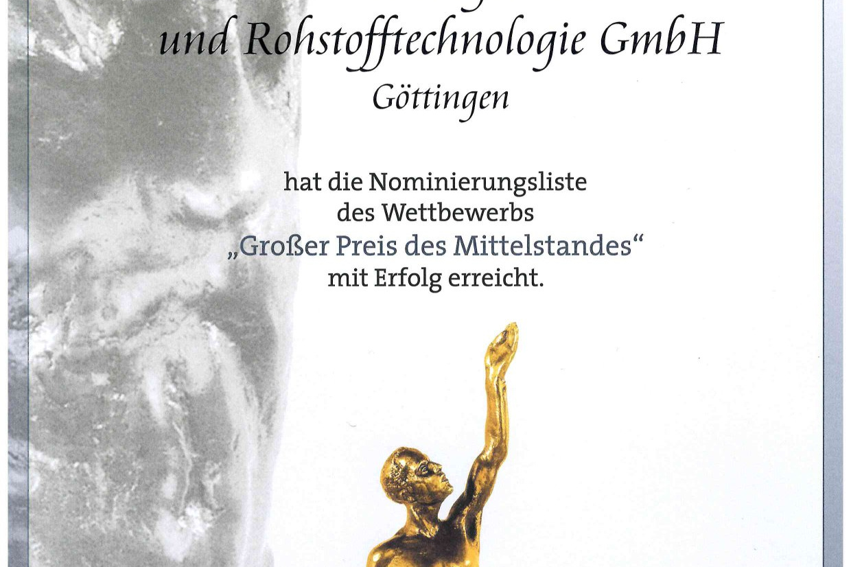 Wir wurden erneut für den Wettbewerb „Großer Preis des Mittelstandes“ der Oskar-Patzelt-Stiftung nominiert. Damit haben wir die 1. Stufe des Wettbewerbs – die Nominierungsliste –