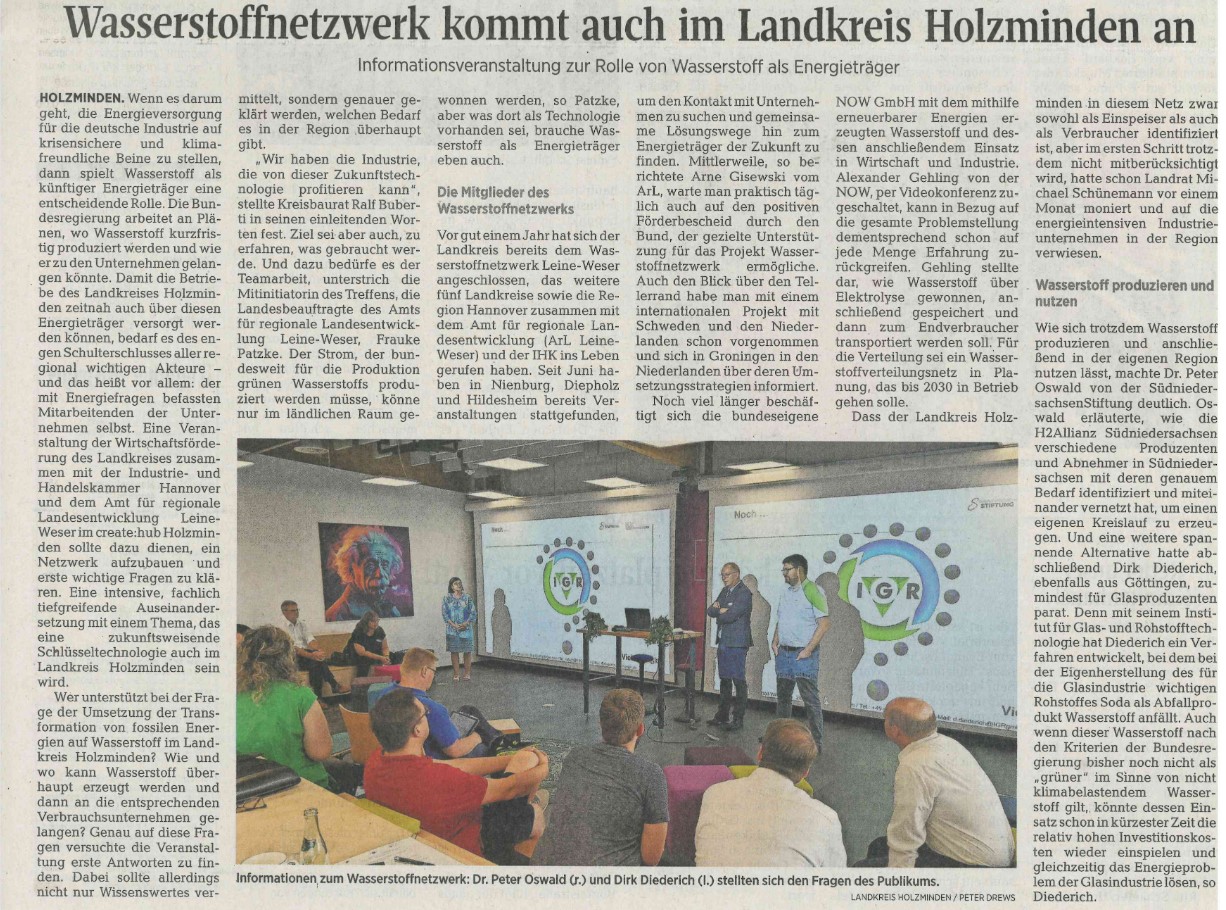 2023 - Info-Veranstaltung - Wasserstoffnetzwerk kommt auch im Landkreis Holzminden an:
